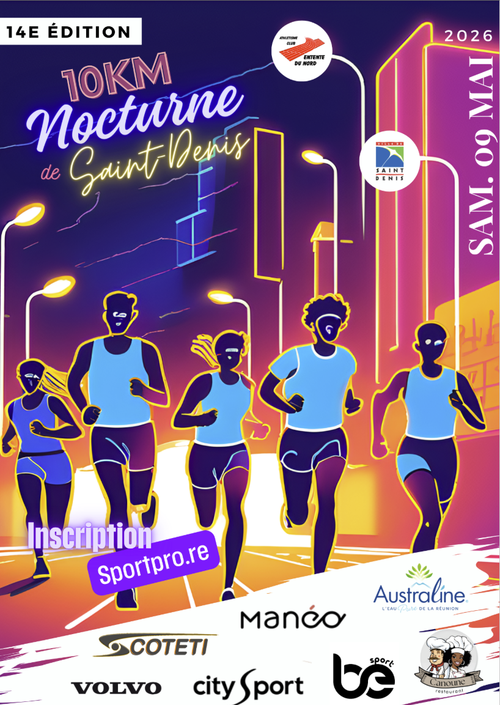 Course sur route disputée en soirée, ce 10 km nocturne propose un parcours urbain dans le centre de Saint-Denis.